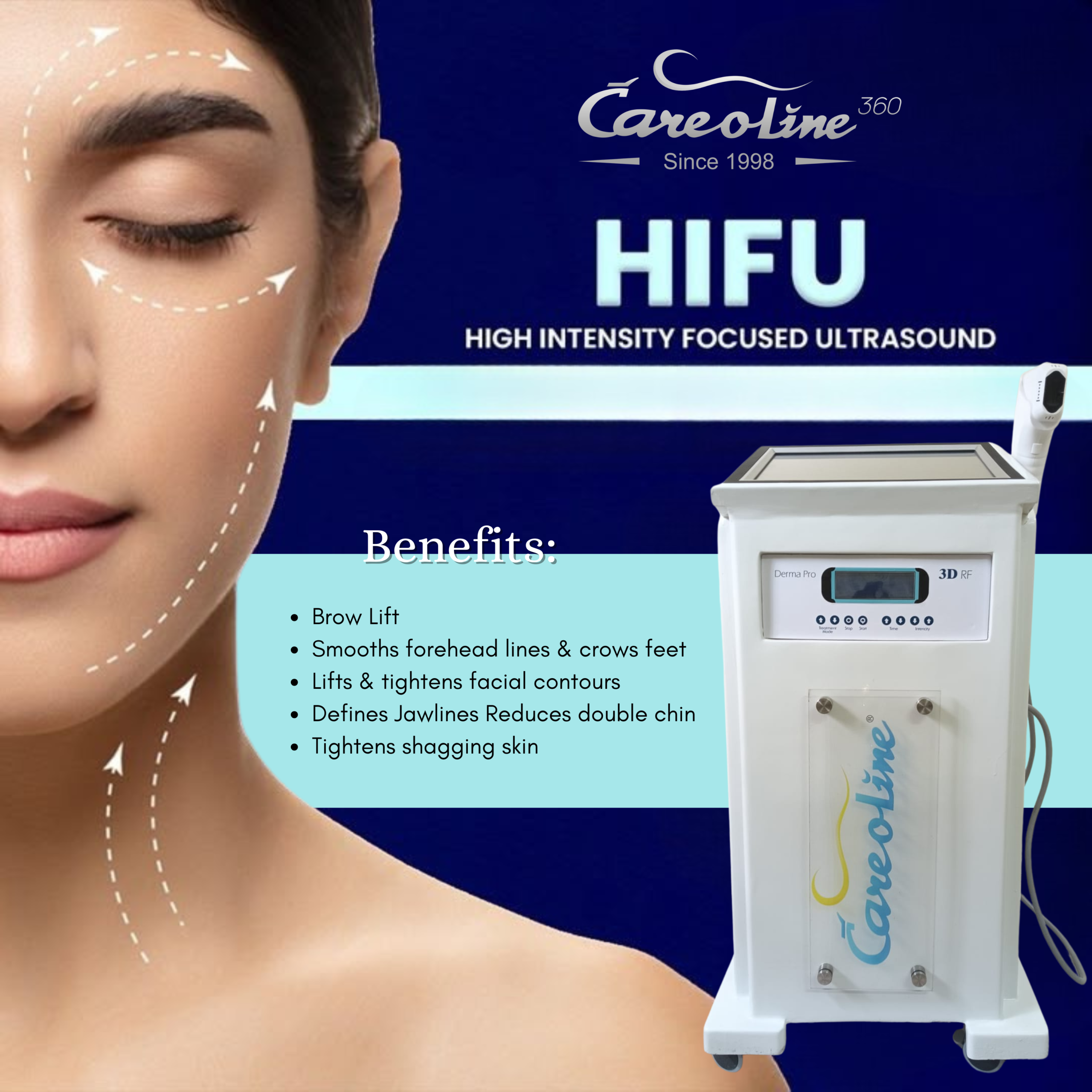 HIFU / RF / Laser / Hydra Systems (model-dependent)